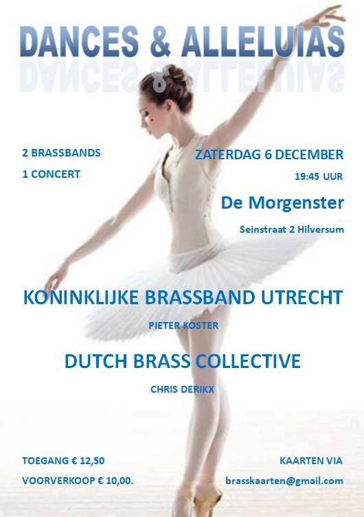 Daarna op zaterdag 6 december geven de “Koninklijke Brassband Utrecht” en de “Dutch Brass Collective” een gezamenlijk concert in de Morgenster, Seinstraat 2 in Hilversum. Aanvang 19:45 uur.